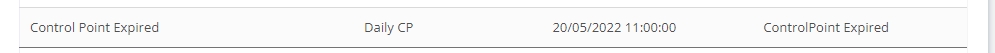 Jeżeli użytkownik nie podpisał CP przed upływem terminu jego realizacji, zostaje on automatycznie podpisany przez system. Podpisanie jest rejestrowane w Dzienniku jako zdarzenie „Control Point Expired" (Wygaśnięcie punktu kontrolnego). W tym wypadku po automatycznym podpisaniu CP ponownie pojawi się na dashboardzie z kolejnym terminem wygaśnięcia, gdyż zaraz po podpisaniu został spełniony warunek z punktu 2.