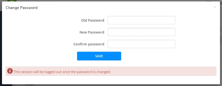 Wprowadź stare hasło, dwukrotnie nowe hasło i kliknij „SAVE”.