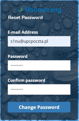 Wprowadź swój adres e-mail i nowe hasło w polach “Password” i “Confirm password”.