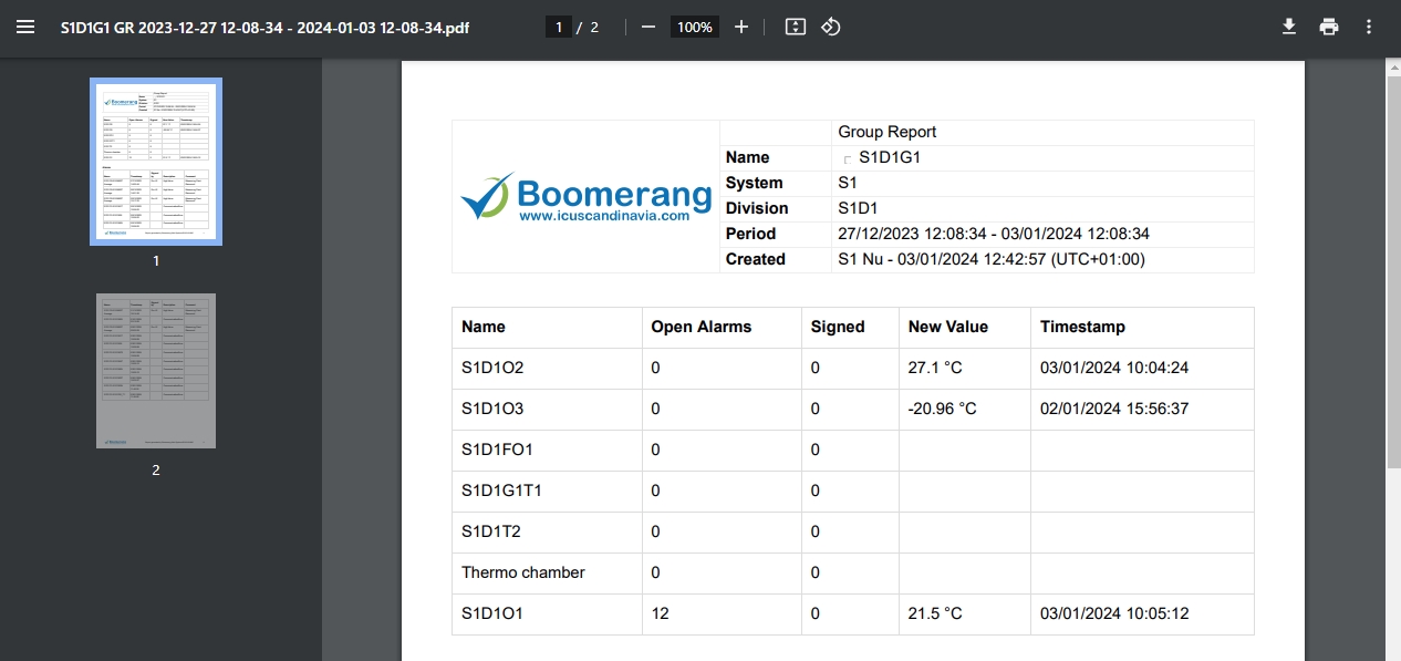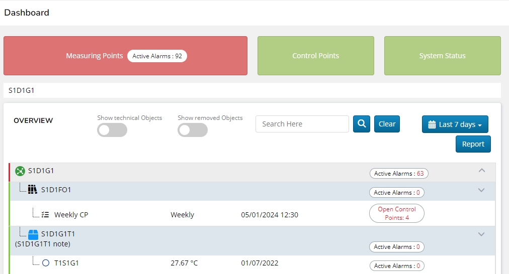 W panelu kliknij grupę, a następnie obiekt, dla którego chcesz utworzyć raport (w przykładzie S1D1O1), aby otworzyć widok obiektu.