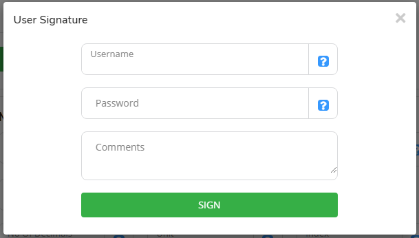 When signing is needed, a “User Signature” form is opened.