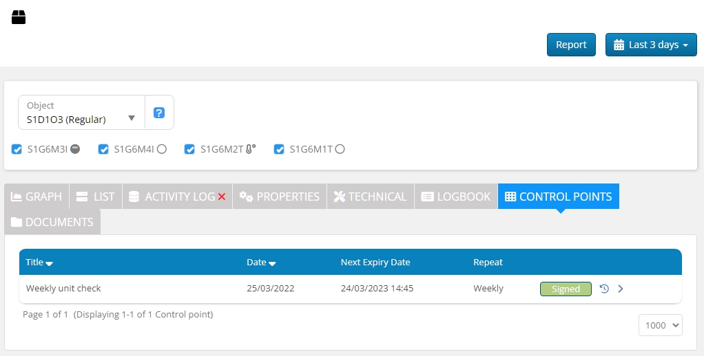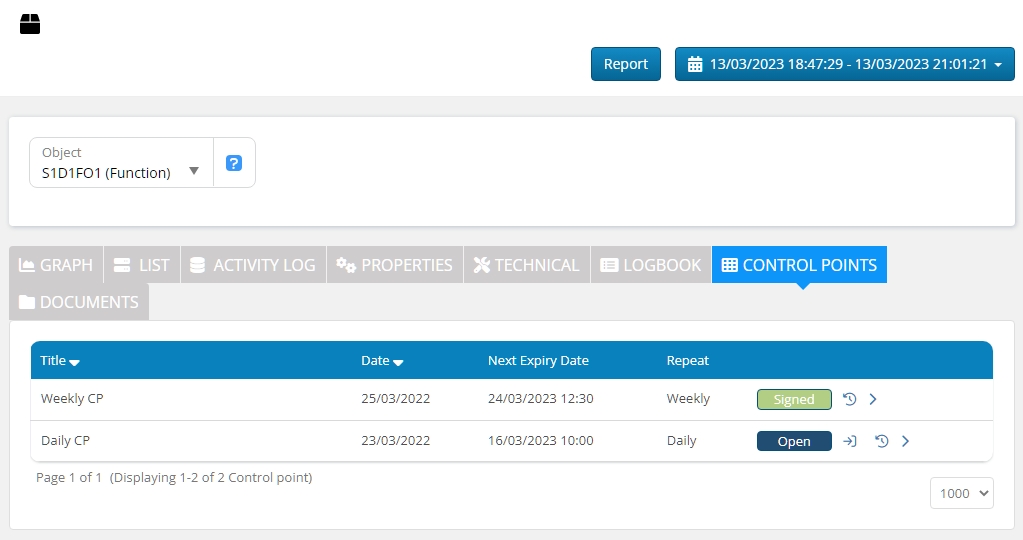 The Control points tab presents the object control points for which the handling is described in Control point handling.