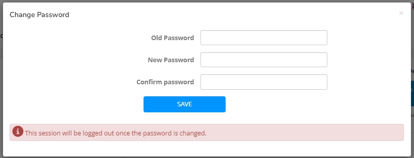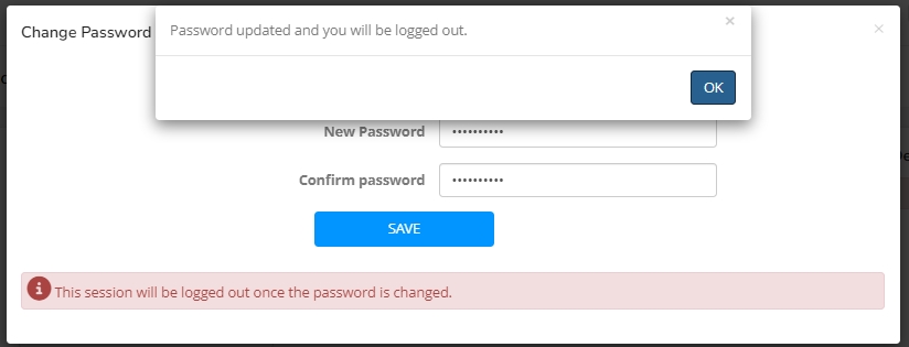 Click the “CHANGE PASSWORD” button to change the password.