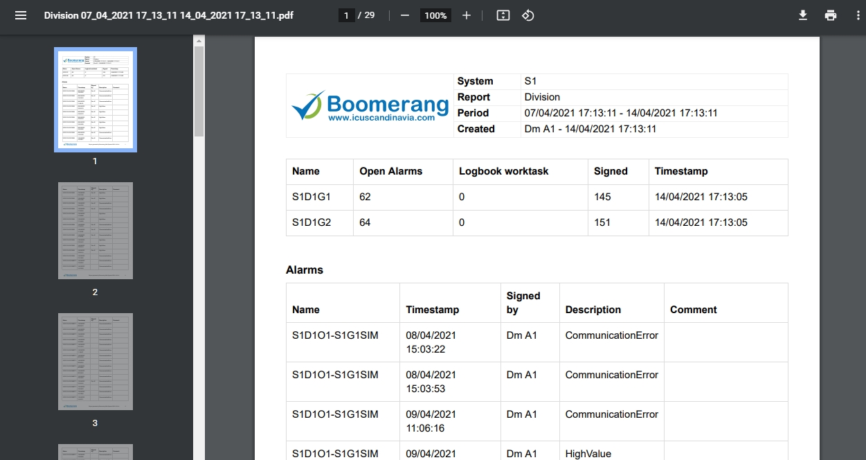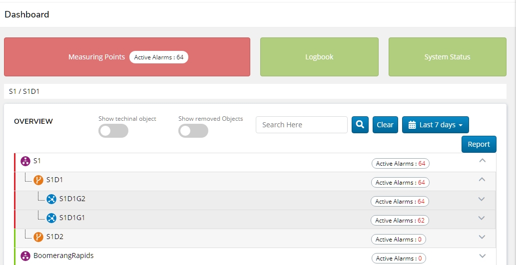 From the dashboard click the system group and then division you want to create a report for (S1D1 in the example).