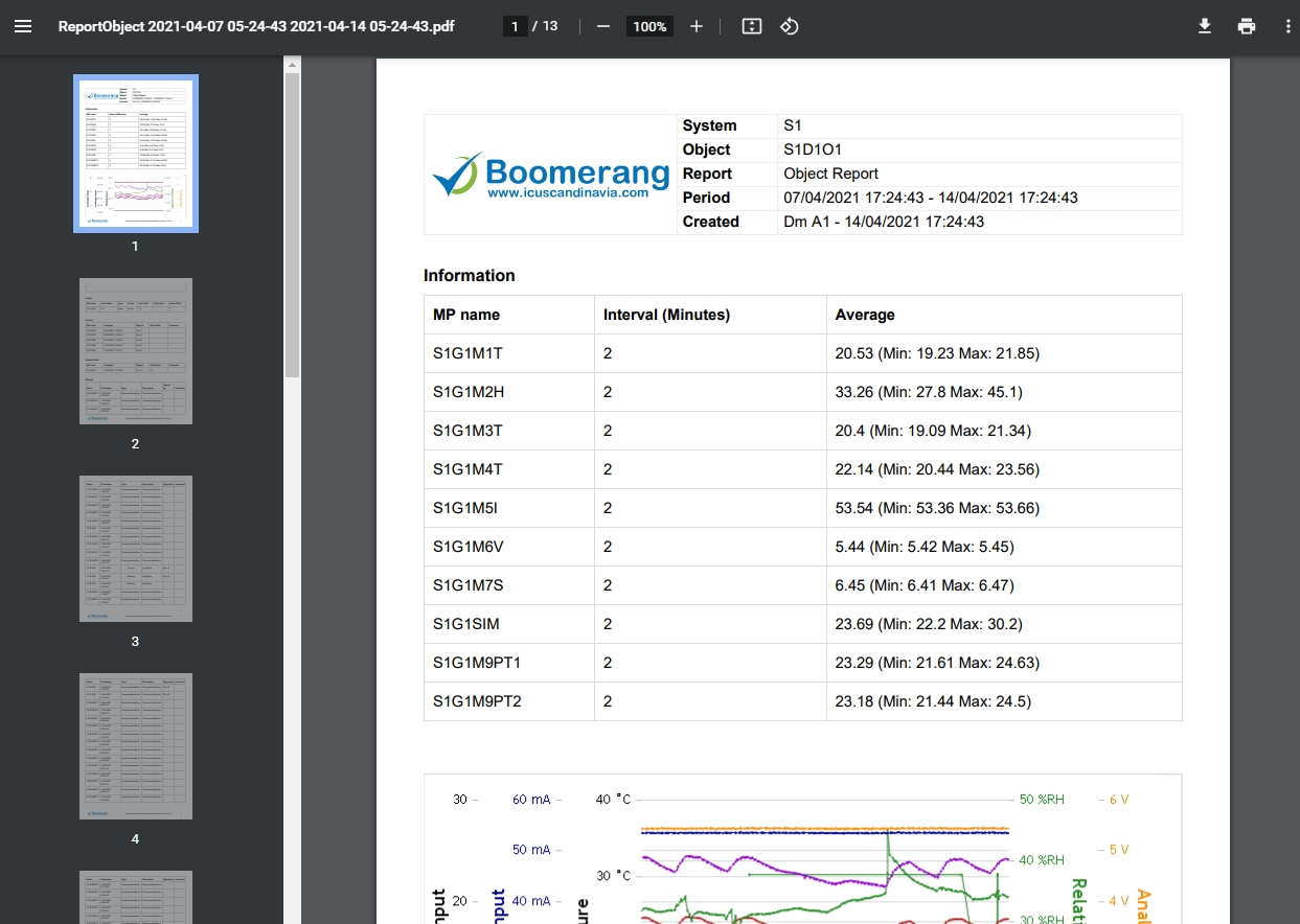 From the dashboard click the system group, then division, group and then the object you want to create a report for (S1D1O1 in the example) to open the object view.